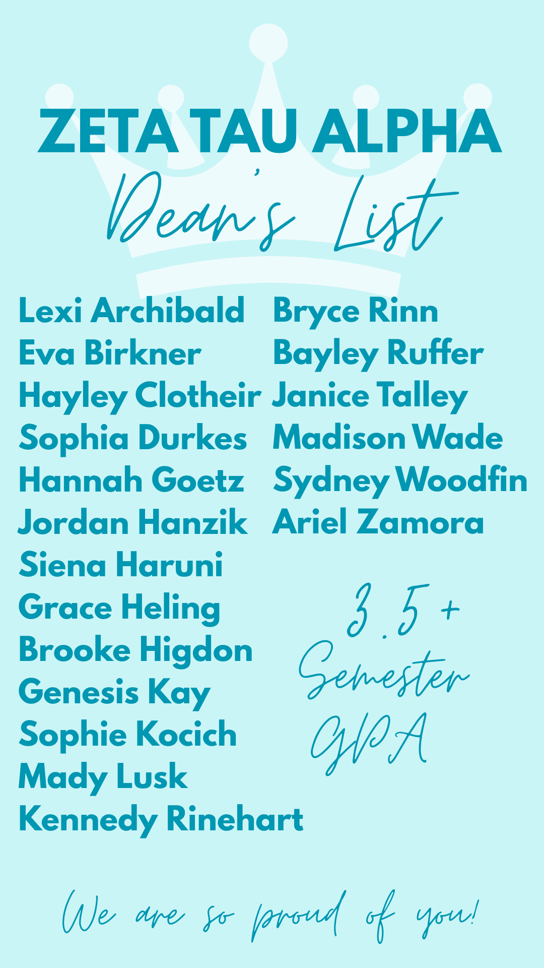 For additional information, please contact VP Academic Achievement, Grace Armiger